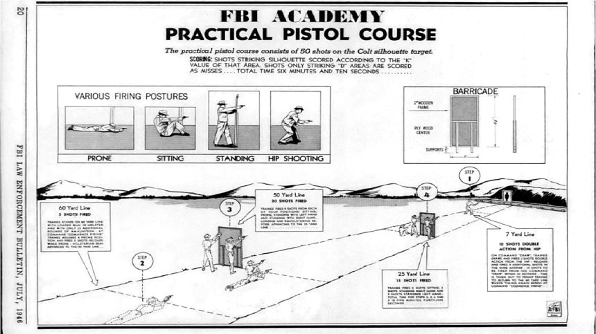 As a result of its numerous run-with desperados during the Great Depression, the FBI began to evolve its training program. Initially based on U.S. Army pistol qualification, as the Bureau gained experience in gunfighting, it realized it had to do better. FBI Director J. Edgar Hoover wrote an article for the July 1945 issue of The American Rifleman giving an overview of the Bureau’s firearms training program. In 1946, the July, August and September installments of the monthly FBI Law Enforcement Bulletin explained the Practical Pistol Program (PPC) in detail.